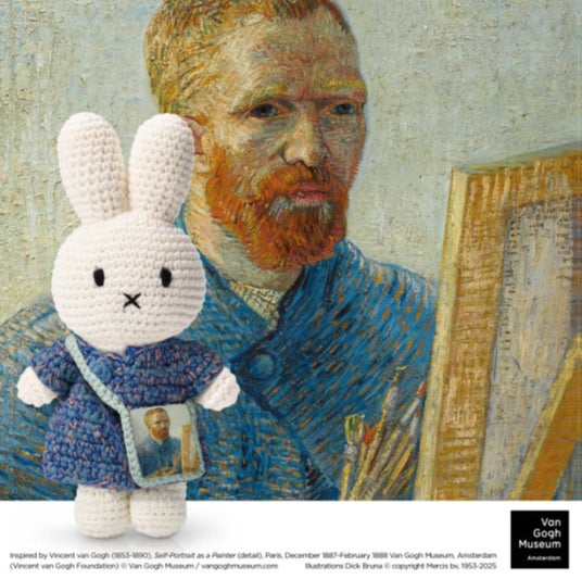 ミッフィー「あみぐるみ」は、本展に出品されるフィンセント・ファン・ゴッホの《画家としての自画像》から着想を得た、特別デザインとなります。本商品は、グッズセット券(前売券のみ)と展覧会公式オンラインショップ(2026年1月以降に販売予定)において、数量限定で販売します。