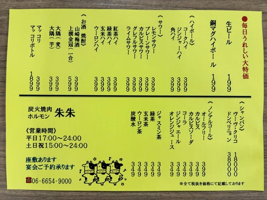 店 名:炭火焼肉ホルモン 朱朱長居本店