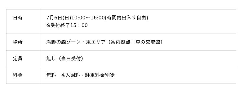 たきの森フェス~2025Summer~夏と冬に開催している滝野の森ゾーンのおまつりたきの森フェス!