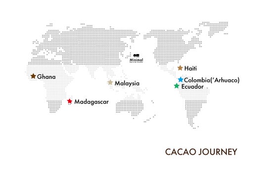 Minimal は世界のカカオ産地を訪れ良質なカカオ豆から職人が一つ一つ手仕事でチョコレートの製造をしています。「丁寧にシンプルに、最高の素材を活かし香りを最大限に引き出す」という原点に真摯に、国内外の星付きレストランやトップパティスリーで腕を磨いてきたパティシエ・ショコラティエ・職人達が切磋琢磨し、チームワークでMinimalのチョコレートやスイーツをつくります。