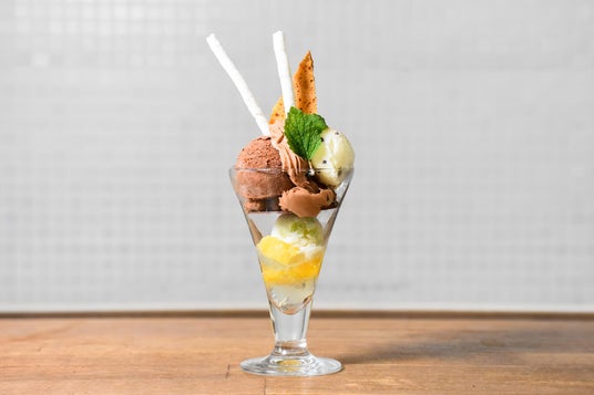 トップには、心地よいビターさの「HIGH CACAO」チョコレートアイスと、ハイチ産カカオから搾った濃厚ながら後味軽やかなホワイトチョコレートアイスの2種をトッピング。さらに2つのアイスの間には「CLASSIC」チョコレートにメロンを絶妙にあわせた爽やかな甘味のガナッシュクリームを添えています。