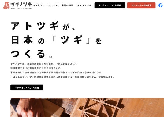 本事業の開始に伴い、キックオフイベントが開催されます。またあわせて「ツギノツギ」コミュニティがスタートします。