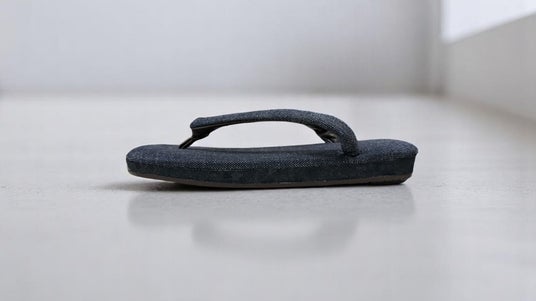 希少な坪通しの鼻緒に、インディゴ染を施したコルク芯ソール