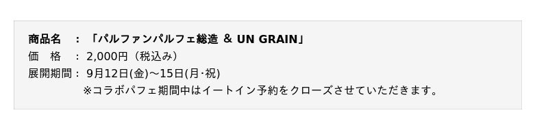 第一弾:「UN GRAIN卒業パティシエとのコラボパフェ」