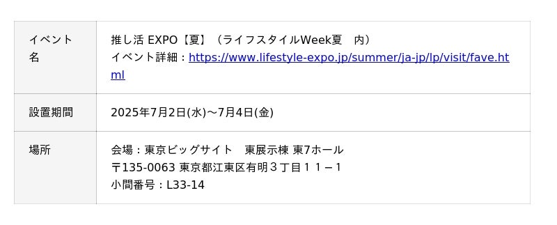 キタムラ・ホールディングス グループのピックハイブ株式会社(本社:東京都新宿区、代表取締役社長 兼 COO:大迫 由典)は、2025年7月2日(水)~7月4日(金)の期間中、東京ビッグサイトで開催される業界最大級の"推し活グッズ"の展示会「推し活 EXPO【夏】」に、体験型コンテンツとして法人レンタル可能なセルフフォトブース「Photomatic」を出展します。