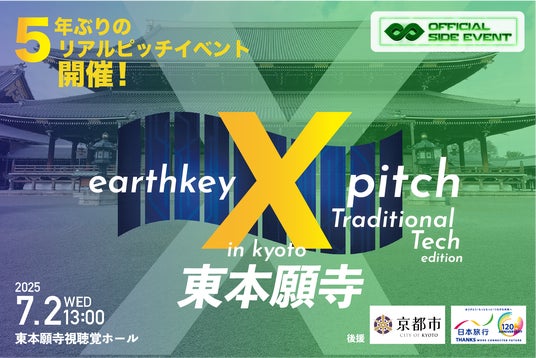 株式会社アースキー(本社:東京都品川区、代表:林 晋之介)では、7月2日(火)13時より京都 東本願寺・視聴覚ホール【IVS京都公認】earthkey X pitch vol.26 -Traditional Tech編- in 東本願寺を開催します!