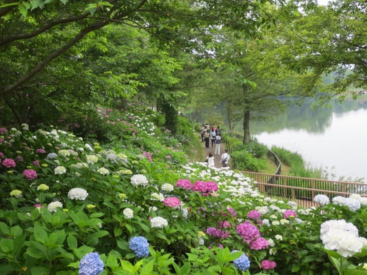 香川県仲多度郡まんのう町にある国営讃岐まんのう公園にて、四国最大級40品種2万本のあじさいが見頃を迎えています。