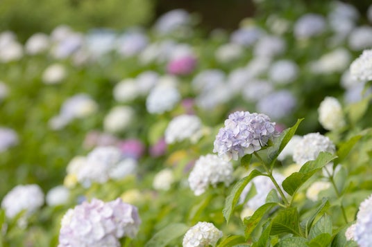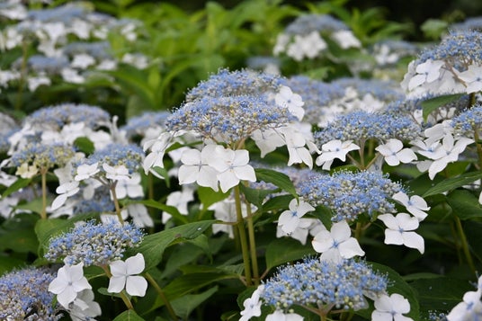 あじさいを代表するてまり咲きから豪華な八重咲きの品種、ガクアジサイをはじめとした野趣あふれる系統まで、そのバリエーションの豊かさにきっと驚くはず。