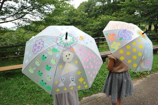 ビニール傘に好きな絵を描いて、自分だけのステキな傘を作りましょう♪