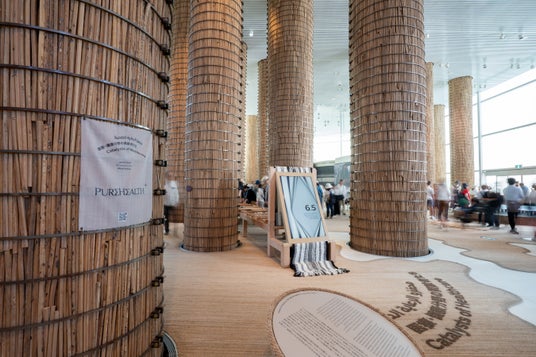 パビリオンの建築は、UAEを象徴するナツメヤシの木に着想を得て、伝統的なエミラティ建築様式「アリーシュ」を再解釈したものです。ナツメヤシの農業廃棄物と日本の匠の木工技術を融合することで、UAEと日本の文化が協働の精神のもとに結びついています。