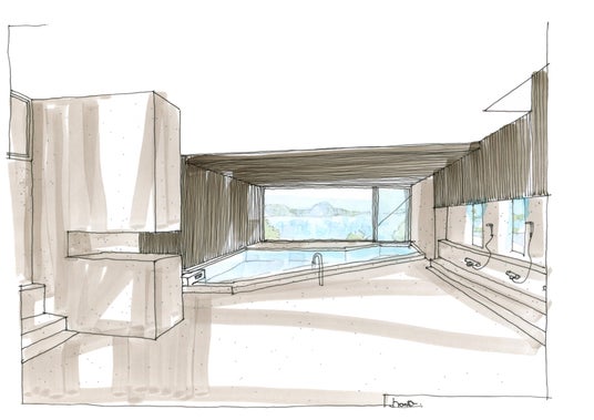 「漆黒モダニズム」を基盤とするデザインは、建築、インテリア、自然環境が一体となった新しい日本の美を形づくり、訪れる人々に記憶に残る特別な空間を提供します。日本の伝統美を基軸としながら、漆黒を基調としたモダニズムで再解釈することで、洗練されたデザインを実現しました。漆黒の色彩は、空間に力強い存在感を与える一方、自然の景観と静かに溶け合う調和の美を体現します。この色使いは、ミニマリズムと日本の美意識を融合させ、伝統と革新が調和したデザインを創造します。施設の各空間には、素材の質感や繊細なディテールにこだわりが随所に反映されます。木の温もりや滑らかな表面の仕上げが調和し、触覚的な体験も含めた全方位的なデザインを追求。レセプションから客室、ラウンジに至るまで、空間全体がサロンのような親密さが漂い、洗練された統一感を演出します。