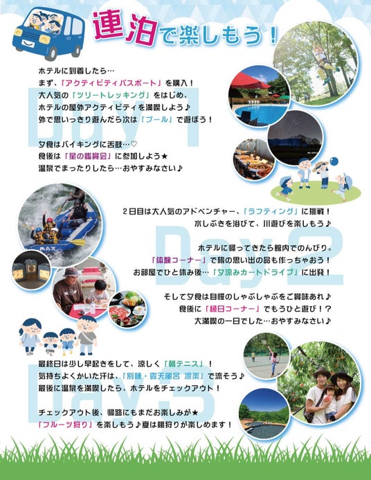 一昨年あたりから「日中は暑すぎて、外で遊ぶ子どもが減っている」というニュースを目にするようになってきました。水上高原リゾート(株)の運営する「水上高原リゾート200」は、群馬県北部、みなかみ町の中でも標高が高く、約1,000mに位置する高原リゾートです。7月~8月の平均気温が東京よりも約6℃も低く、夏でも思いっきり外で遊ぶ事ができます。