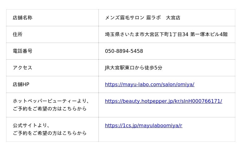 株式会社ベルトレンド(本社:大阪府大阪市 代表取締役社長 瀧川 維星)は、2025年7月2日(水)に、全国9店舗目となる「メンズ眉毛サロン 眉ラボ 大宮店」をオープンいたします。