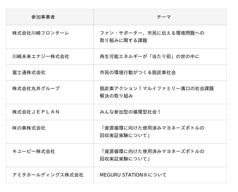 ●高校生ならではの発想で、サステナブルを楽しく遊びながら学ぶワークショップを提案してもらえました。今後、ホームゲームで実現していきたいと思います。(株式会社川崎フロンターレ)●授業を機に、若者らしく探求を深め、未来を切り拓くことを期待する一方、若者へ良い形でバトンを渡すのは我々大人の責任だと改めて感じました。(川崎未来エナジー株式会社)