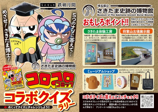 株式会社小学館が発刊する男子小学生向けマンガ雑誌『月刊コロコロコミック』(以下『コロコロコミック』)は、埼玉(さきたま)古墳群の稲荷山古墳から出土した国宝「金錯銘鉄剣」(きんさくめいてっけん)を所蔵する埼玉県行田市の博物館「埼玉県立さきたま史跡の博物館」(以下、さきたま史跡の博物館)において、同博物館とのコラボレーション企画「さきたま史跡の博物館×コロコロコミックコラボクイズラリー」を2025年7月1日(火)から7月31日(木)まで開催します。