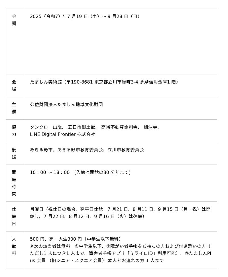 ・お申込み方法:たましん美術館お問合せフォーム、お電話、美術館受付のいずれかにて、以下の情報をお知らせください。