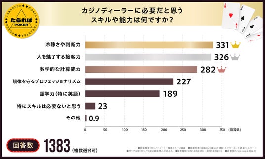 続いて、「カジノディーラーに必要だと思うスキルや能力」について調査をしたところ、