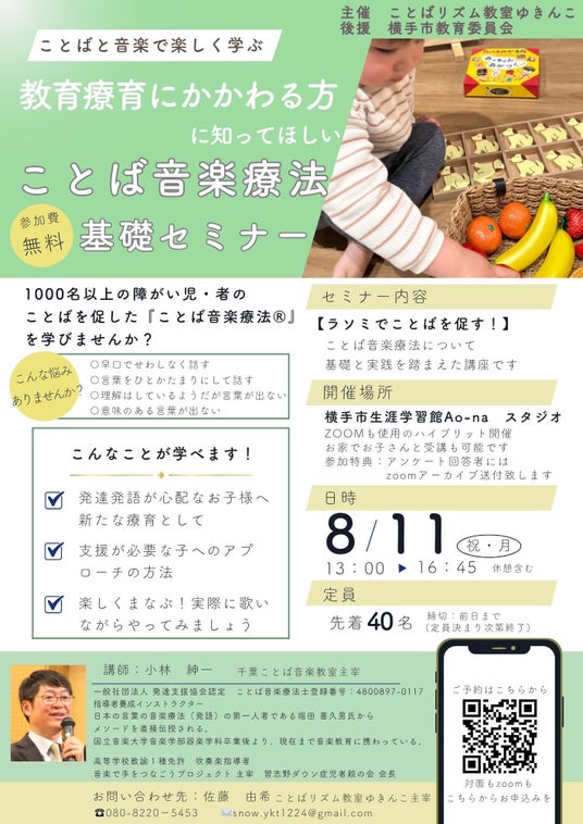 秋田県南地域では、ことばや発達に課題を抱える子どもたちへの新たな支援方法が求められています。そこで今回、東北初のことば音楽療法士が主催するセミナーを企画。教育・福祉従事者や保護者に対し、より効果的なアプローチを学べる機会を提供することを目的としています。