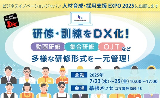1995年創業のeラーニング専門ソリューション企業、株式会社デジタル・ナレッジ(本社:東京都台東区、代表取締役社長:はが弘明)は、2025年7月23日(水)~25日(金)、新時代の経営課題解決のための総合展 ビジネスイノベーションジャパン「人材育成・採用支援 EXPO 2025」に出展します。