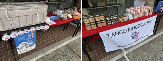 会場の外では京丹後市から「丹後王国」と「ちょっと丹後」がブースを出店し、丹後の食材を使った加工品や会場内で食べられるおつまみなどを販売しました。