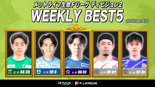 6月28日(土)~6月29日(月)に実施したメットライフ生命Fリーグ2025-26 ディビジョン2 第3節におけるベスト5をお知らせいたします。