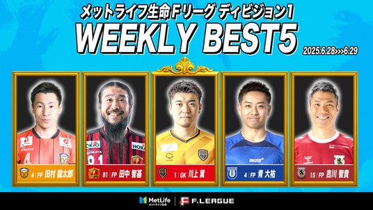 6月28日(土)~6月29日(月)に実施したメットライフ生命Fリーグ2025-26 ディビジョン1 第5節におけるベスト5をお知らせいたします。