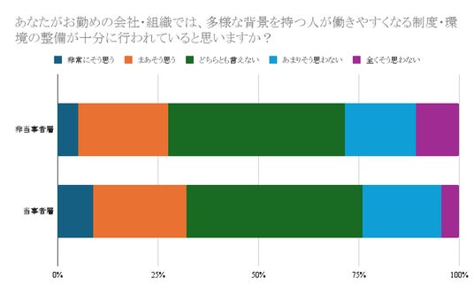 Q. あなたがお勤めの会社・組織では、多様な背景を持つ人が働きやすくなる制度・環境の整備が十分に行われていると思いますか?「まあそう思う」「非常にそう思う」とした割合は27.7%