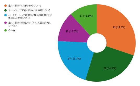 「パートナーシップ証明など関係性証明がある場合のみ許可している」と答えた割合は21.1%