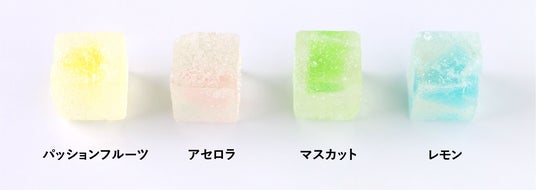 フレーバーは、パッションフルーツ、アセロラ、マスカット、レモンの全4種類。 見た目も味わいも楽しめる、夏にぴったりのキャンディです。