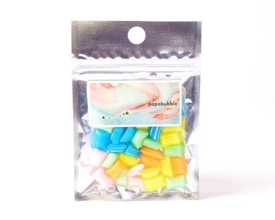 透明度の高いシャンパンフレーバーのキャンディに、爽やかな酸味のグミを閉じ込めた、PAPABUBBLEの夏限定アイテムが今年も登場します。外側にはキシリトールをまとわせており、口に入れた瞬間から“ひんやり感覚”が広がる、見た目にも味わいにも清涼感あふれる一粒です。