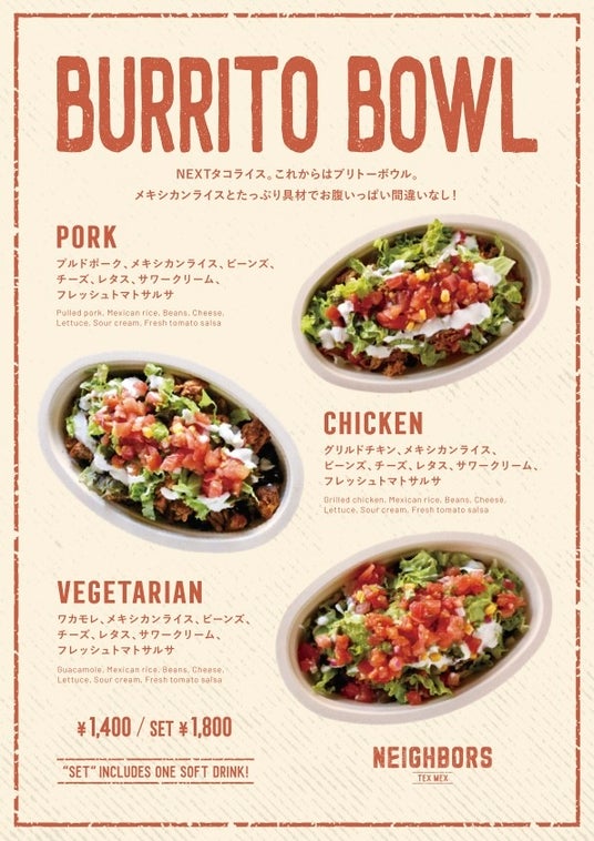 ブリトーやケサディーヤ、ブリトーボウルなどのボリューム満点で幅広いメニューを取り揃えお待ちしております。