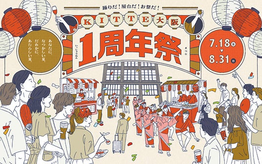 日本郵政不動産株式会社(東京都千代田区、代表取締役社長 山代 裕彦)およびJPビルマネジメント株式会社(東京都千代田区、代表取締役社長 三宅 正博)が運営する「KITTE大阪」(大阪府大阪市北区梅田3丁目2-2) は、今年の7月31日(木)で開業1周年を迎えます。これまでのご愛顧に感謝の気持ちを込めて「KITTE大阪 1周年祭」を、2025年7月18日(金)~同年8月31日(日)の期間で開催します。