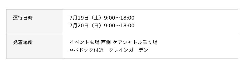 小さなお子さま連れ・ベビーカーをご利用の方、ご年輩のお客様・車いすをご利用の方向けに、イベント広場からパドック付近(レストラン クレインガーデン)を結ぶ、 『ケアシャトル&ウェルキャブ』 もご用意しております。もちろん無料で、お気軽にご利用いただけます。