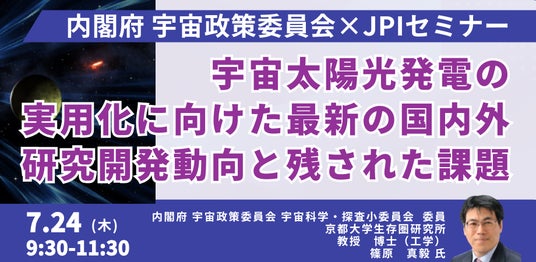 JPI(日本計画研究所)は、内閣府 宇宙政策委員会 宇宙科学・探査小委員会 委員 篠原 真毅 氏を招聘し、宇宙太陽光発電の実用化に向けた最新の国内外研究開発動向と残された課題について詳説いただくセミナーを開催します。