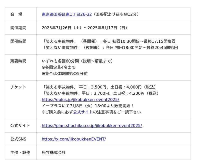 「笑える事故物件 笑えない事故物件」”調査員”募集!松竹(株)映画宣伝部の的場です。