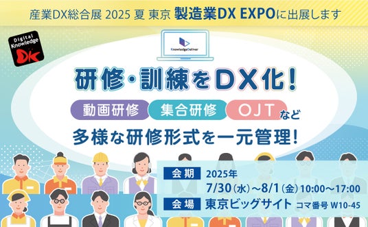 1995年創業のeラーニング専門ソリューション企業、株式会社デジタル・ナレッジ(本社:東京都台東区、代表取締役社長:はが弘明)は、2025年7月30日(水)~8月1日(金)、東京ビッグサイトで開催される 産業DX総合展 2025 夏 東京「製造業DX EXPO」に出展します。
