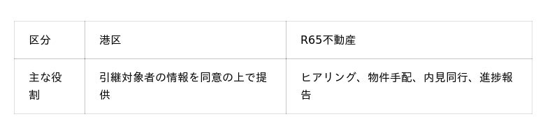 - 港区からR65不動産への相談者(引継対象者)情報の提供
