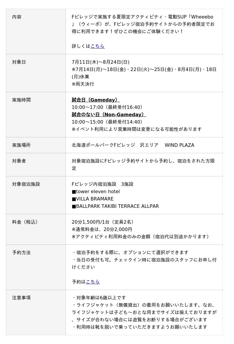 北海道ボールパークFビレッジ内およびFビレッジ近郊宿泊施設が予約できる「Fビレッジ宿泊予約サイト」では、夏の期間限定のサマーキャンペーンを実施中!