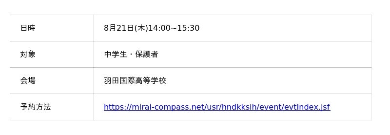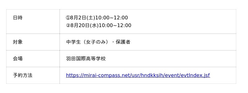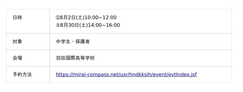 ■羽田国際高等学校 夏の学校説明会・体験会