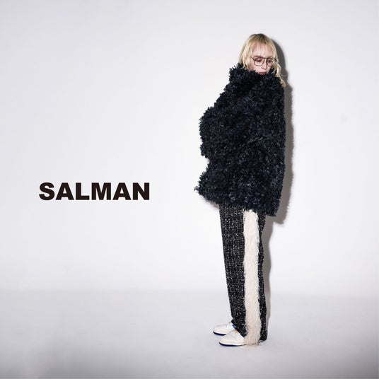 SALMAN (サルマン)コーンロウの黒人少年や無精髭の男性が、ファンシーツイードのジャケットやフリルシャツを纏う--そんなスタイルを着想源に、ジェンダーレスな表現を追求。遊び心あるデザインに、熟練職人のクラフトワークと上質素材を掛け合わせています。
