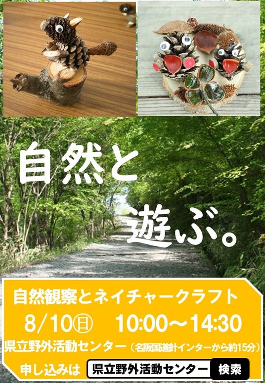県立野外活動センターにおいて自然観察のインストラクターの方を講師にお招きし、自然観察を行います。午後からは木工工作体験を行います。