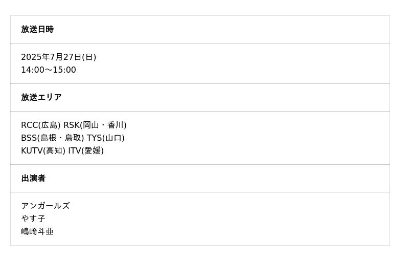 夏に訪れたい「絶景島」をMCアンガールズが紹介する恒例の特番が、2025年の夏も帰ってきます!株式会社中国放送(RCCテレビ)制作の「アンガールズの絶景アイランド」第3弾の放送が決定しました。