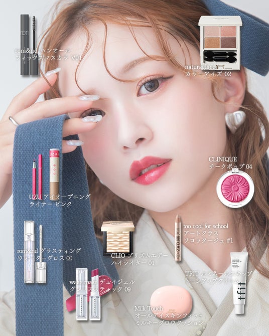 伝統的なお着物の気品は保ちながらも、ヘアメイクやコーディネートで今っぽさをプラスした注目ビジュアルです。