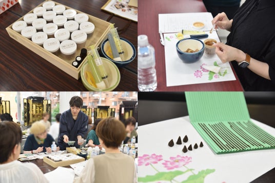 参加者は、香木や天然香料に直接触れながら、自身の感性で香りを組み合わせ、世界にひとつだけのオリジナルお線香を製作。