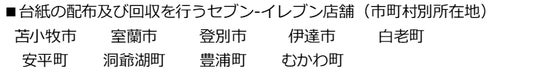 参加方法:下記スタンプラリー対象スポットまたは、胆振総合振興局管内のセブン‐イレブン店舗でスタンプラリーの台紙を入手してください。