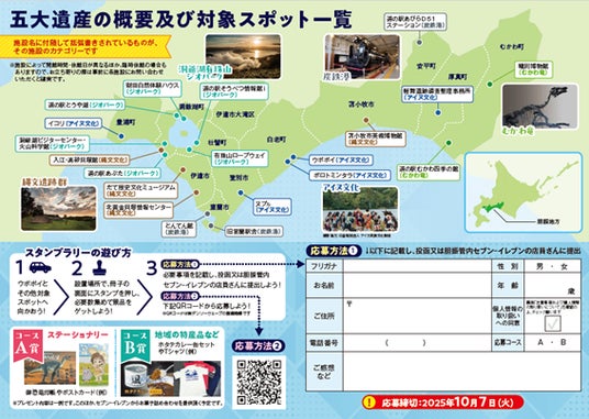 株式会社セブン‐イレブン・ジャパン(本社:東京都千代田区、代表取締役社長:阿久津 知洋)は、2025年7月1日(火)から9月30日(火)までの期間限定で、「いぶり五大遺産スタンプラリー」を北海道胆振総合振興局内のセブン‐イレブン店舗にて開催いたします。