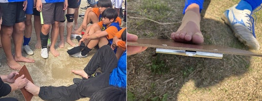 2025年4月、千葉県柏市・逆井運動場にて、地域のジュニアサッカークラブ「エクサス松戸」の中学2・3年生47名を対象に、柔道整復師 上山和俊(千葉県松戸市在住)が足の健康チェックを実施。その結果、