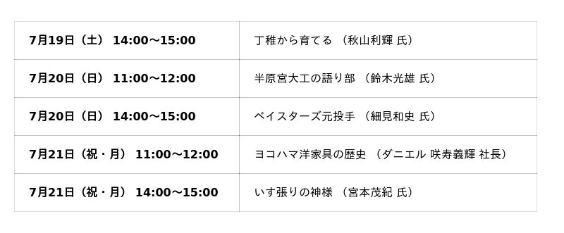 初日となる7月19日(土)11:45より、横浜市役所アトリウム前ステージにて、オープニングセレモニーを開催します。主催・関係者からのご挨拶を予定しています。