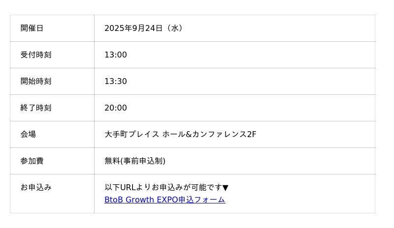 株式会社Growth DXは『BtoB Growth EXPO』(2025年9月24日(水)/大手町プレイス ホール&カンファレンス 2F)を開催いたします。