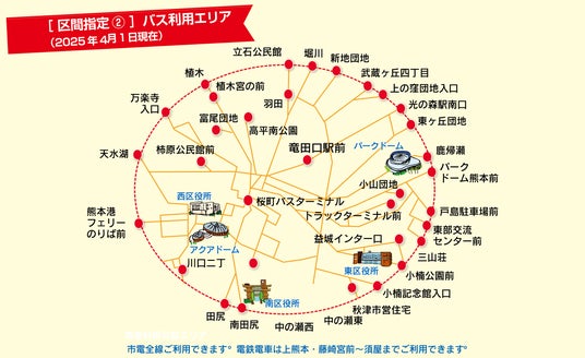2025年7月17日~31日の期間、対象エリアの熊本市電・熊本電鉄電車・路線バス(産交バス、熊本電鉄(バス)、熊本都市バス、熊本バス)に乗り放題の『わくわく1dayパス区間指定2.24時間券』が500円